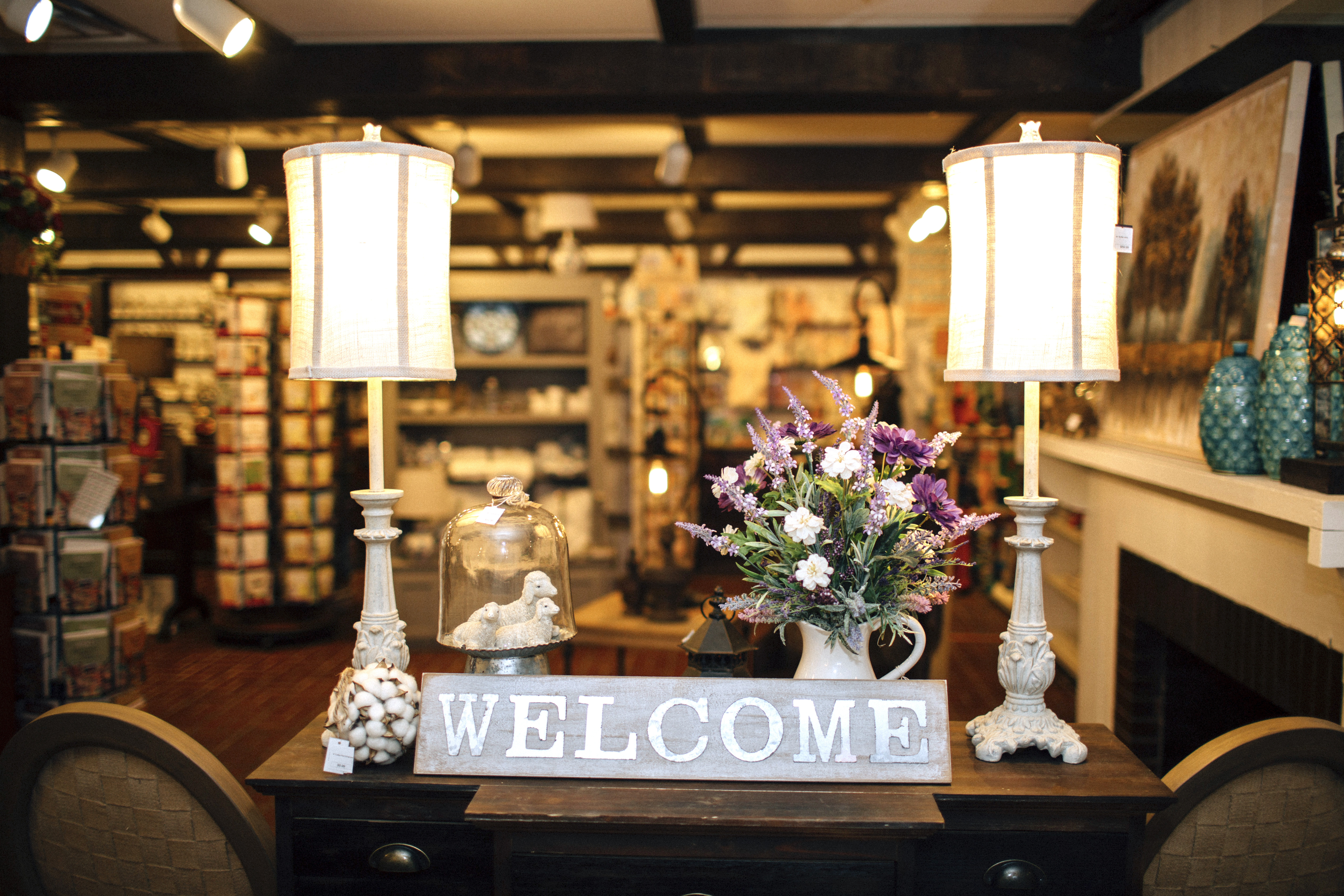 Our Gift Shop stocks books, tea accessories, frames, jewelry, artwork, glassware, ornaments, toys, garden-related items and Golden Lamb merchandise. Our Christmas Room is in a separate nook of the gift shop and remains open all year.